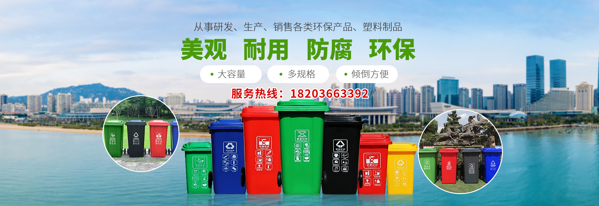 公司積極響應國家建設(shè)生態宜居城市、建設美麗鄉村(cūn)的要求,以推廣環保理念為己任,著力研發(fā)、生產(chǎn)各種類型的環(huán)衛產品。