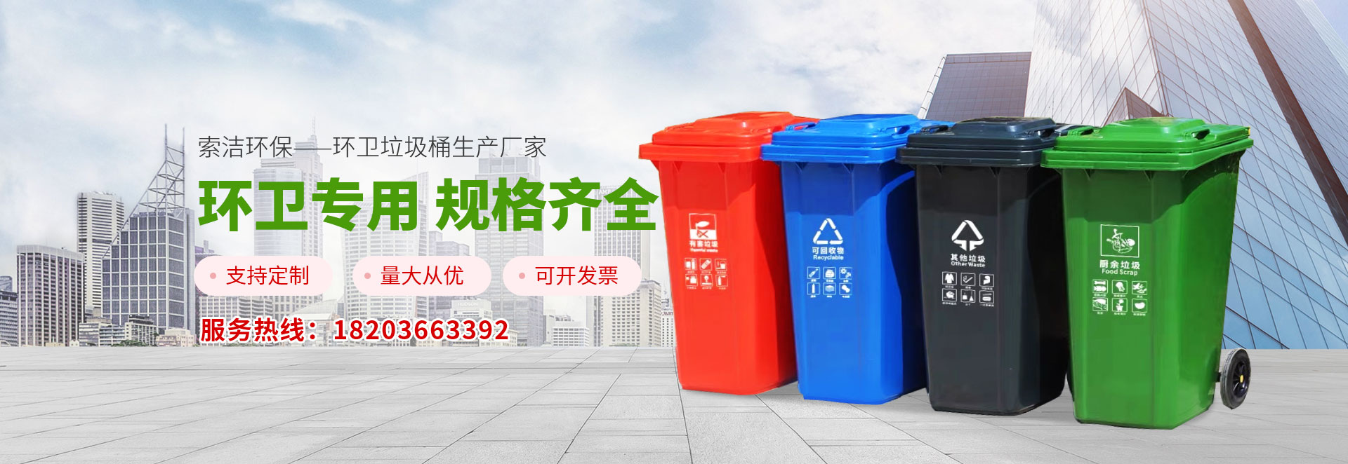 垃圾桶生產的塑料垃圾桶是清(qīng)潔、環衛(wèi)很多行業使用的產品,給城市、小區(qū)衛(wèi)生、各類公共場所帶來清潔、衛生和環(huán)保。